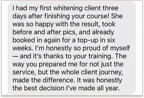That’s why our Teeth Whitening & Tooth Gem Online Training goes beyond techniques. We give you the skills, systems, and confidence to start your own professional business - with everything you need, from certified training to premium products and expert guidance.